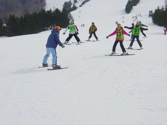 今日は午前、午後とスキーの講習がありました。天気は晴れて暑いくらいでした。雪質が良くて昨日よりも滑りやすかったです。
