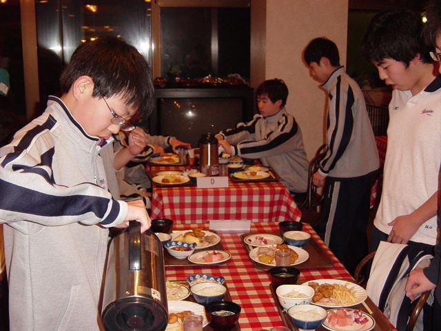 今日は、天気にも恵まれ、あっという間に時間が過ぎてしまいました。それぞれの班が目標を持ちしっかりと練習できていたようです。生活班ごとの活動でも、A~E組までの交流がよくできているという意見が多かったです。また、中学生として個人個人の意識も高まり、5分前行動や10分前行動など余裕をもって活動できています。昨年、集合時間ギリギリや遅れる班もありましたが、今年はその反省を生かしています。今日は一日中活動したので、後はぐっすり眠って最終日に備えたいと思います。