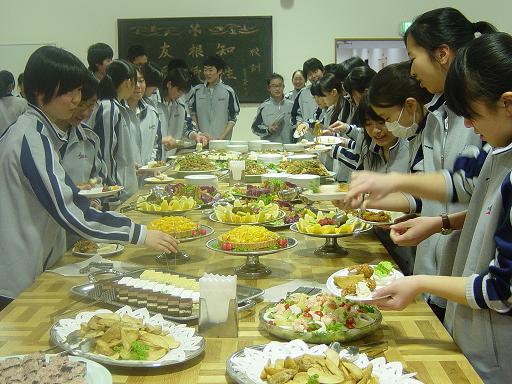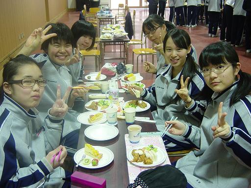 楽しみにしていたビュッフェランチが行われました。から揚げやサンドイッチ、カレー、フルーツ、ケーキなど豊富なメニューが並び、生徒たちは好きなものを食べながら会話を弾ませていました。中学校生活最後の給食ということで、名残惜しい気持ちになりながらも、楽しい一時を過ごせたようです。